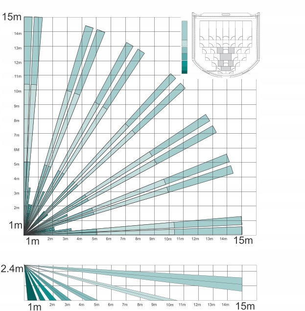 Optics has been divided into 60 zones, which guarantees accurate covering of the entire protected area and protection of the approach zone (area under the detector),