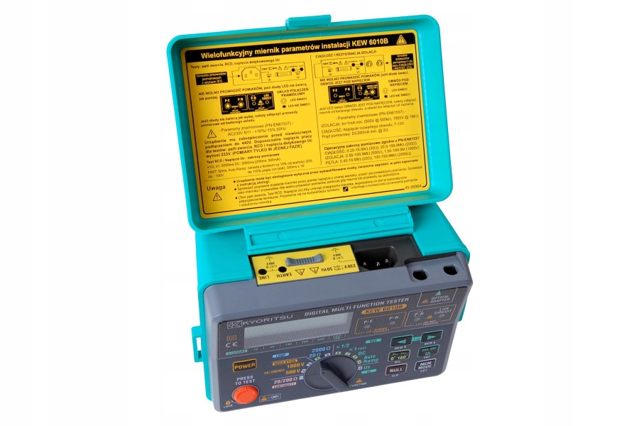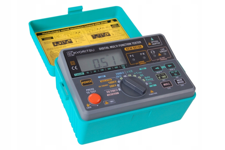 KEW6010B – це багатофункціональний лічильник параметрів електроустановок, оснащений внутрішнім пам'ять і порт RS232. Вимірювальні функції лічильника дозволяють виконувати 6 основних вимірювань. Вимірювання параметрів електроустановки відповідає стандарту PN-EN 61557.
