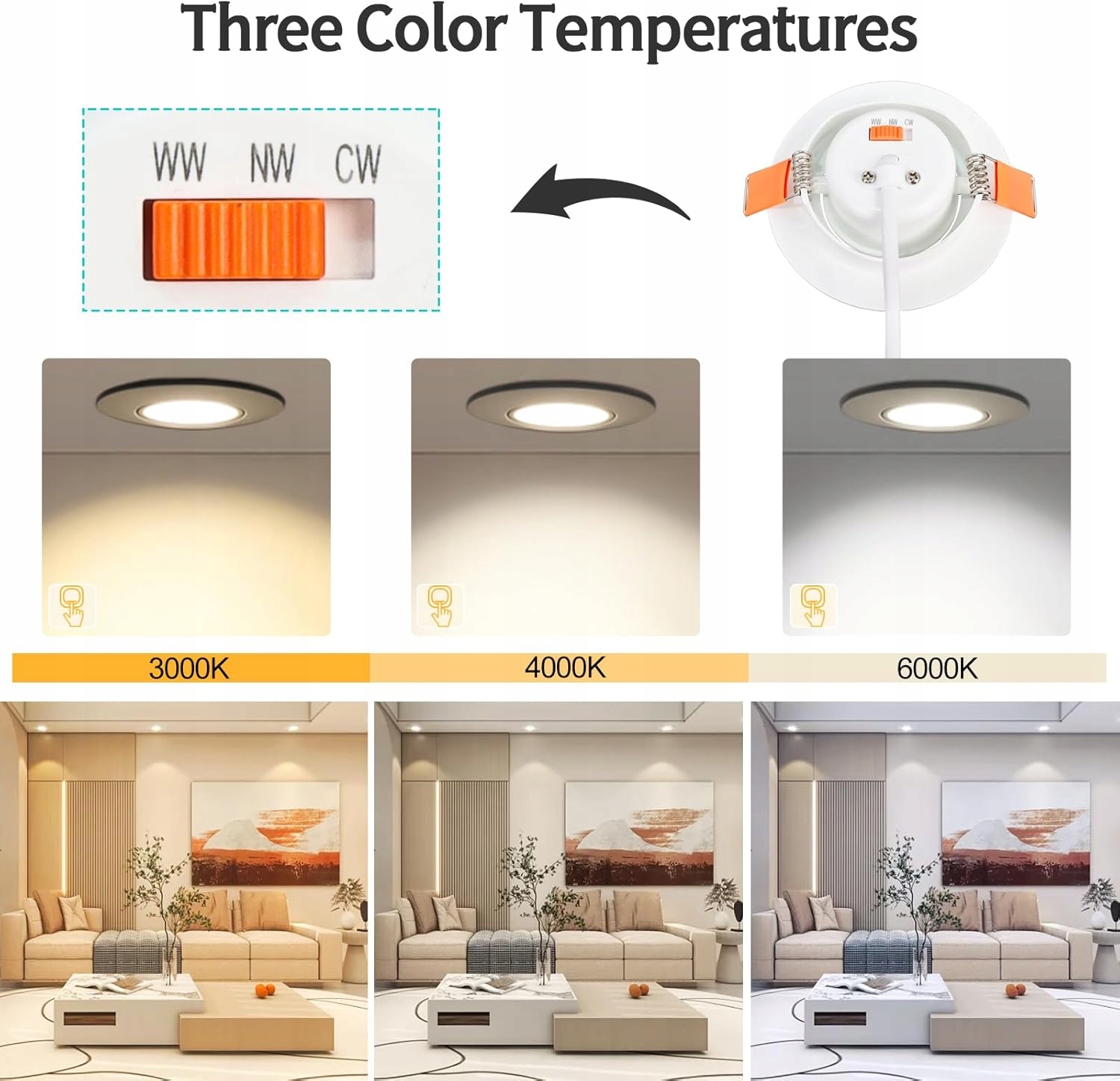 - Просте встановлення: ультратонкі стельові точкові світильники з установкою глибиною лише 30 мм, ці плоскі вбудовані світильники ідеально підходять для ремонту та нових прикрас. Діаметр 90 мм, необхідний розмір отвору в стелі 68-80 мм. Пряме підключення до 230 В, додаткові трансформатори чи аксесуари не потрібні.