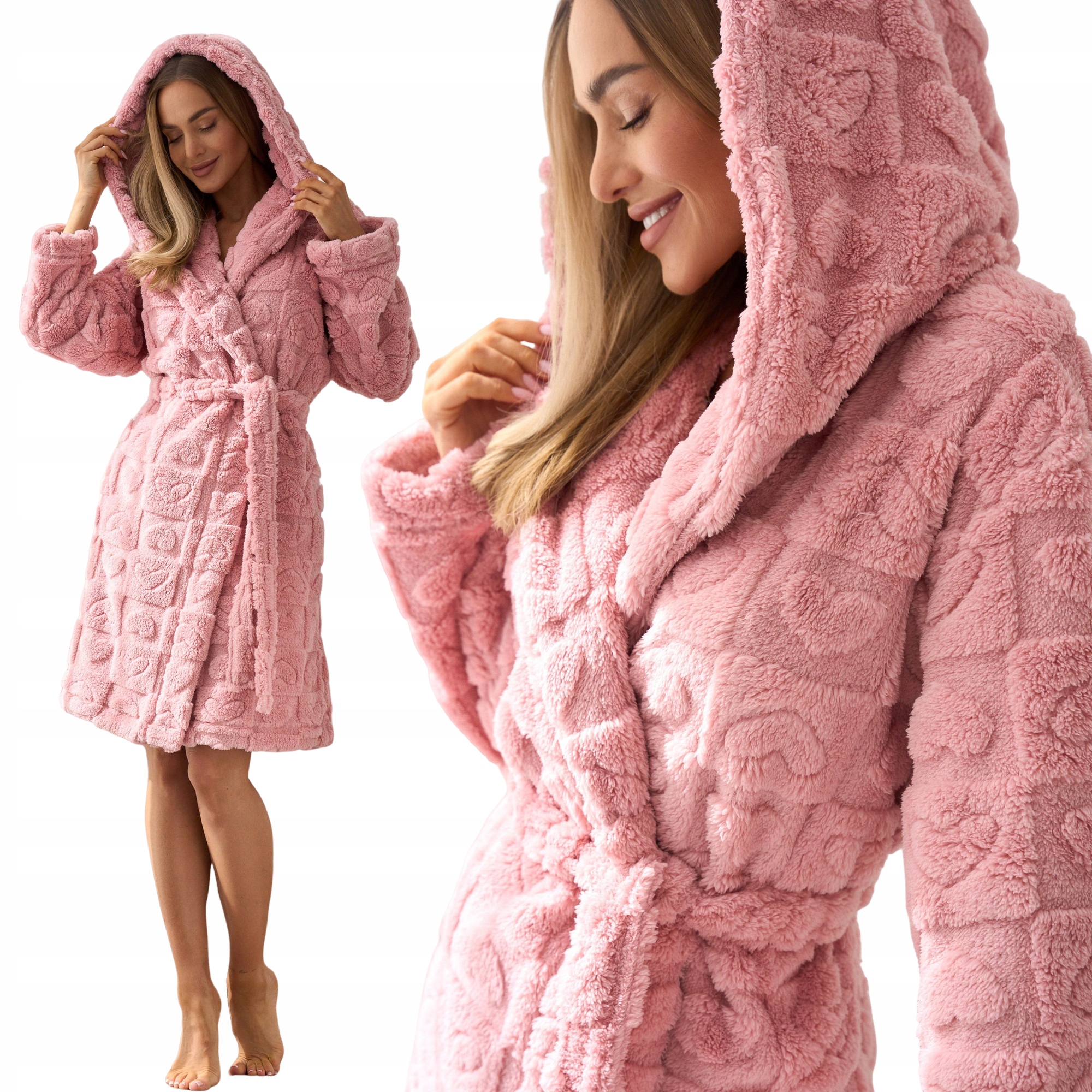 ТЕПЛИЙ ХАЛАТ L&L З КАПЮШОНОМ І КИШЕНЯМИ З СЕРДЕЧКАМИ ПУДРОВИЙ РОЖЕВИЙ M