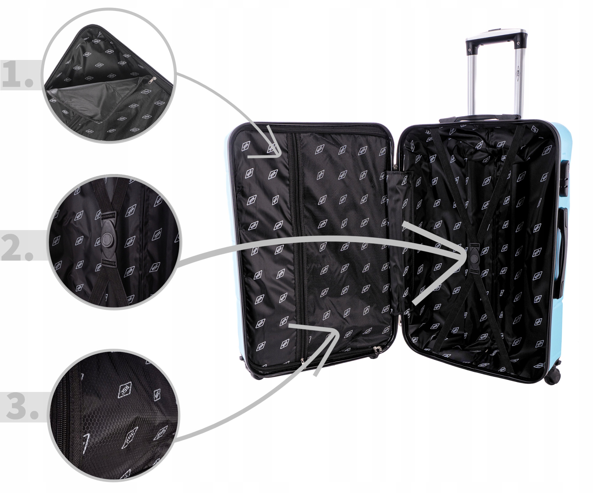 - Задані зовнішні розміри включають усі елементи, що виступають за межі корпусу валізи