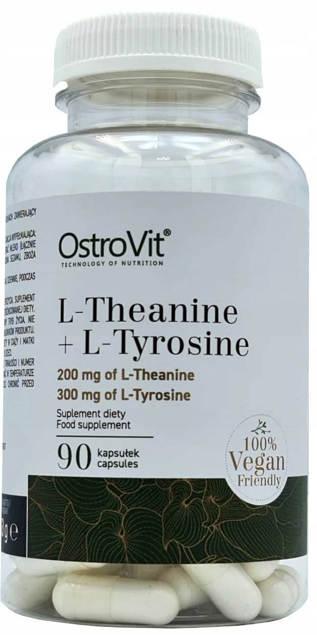 OstroVit Theanine + Tyrosine VEGE до веганська дієтична добавка в капсулах HPMC (целюлоза), що містить суміш двох амінокислот з прокогнітивними властивостями, L-тирозину та L-теаніну. 100% Vege Capsules — це лінія добавок, яка встановлює останні тенденції у відповідності до концепції веганського способу життя. Добавки не містять тваринних речовин або добавок, що робить їх дружніми для веганів і вегетаріанців. OstroVit 100% VEGE CAPSULES означає якість, турботу та відповідь на очікування наших клієнтів.