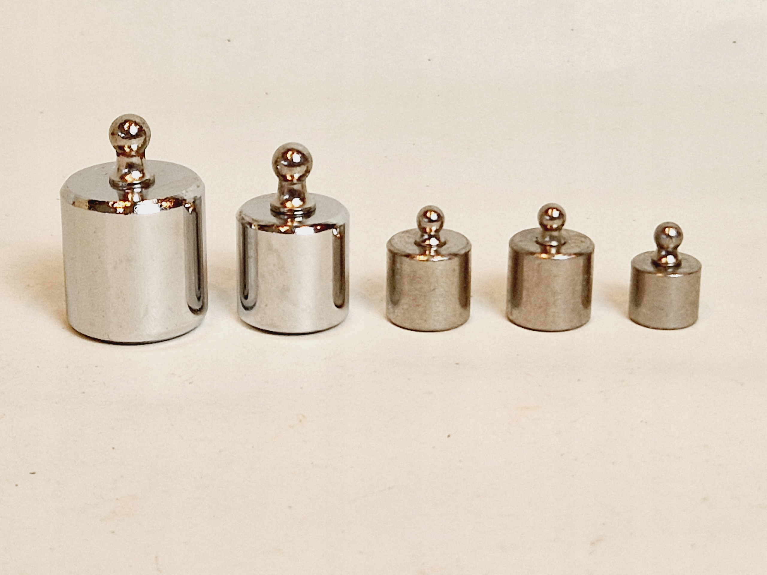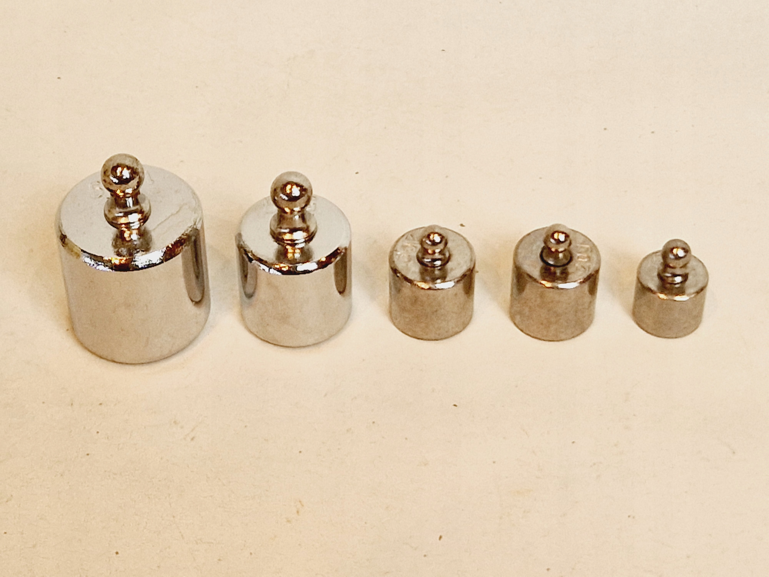 l. 70 / 80-te XX w / Kpl 5 szt. (10g-100g) METRYCZNE ODWAŻNIKI WAGOWE /847