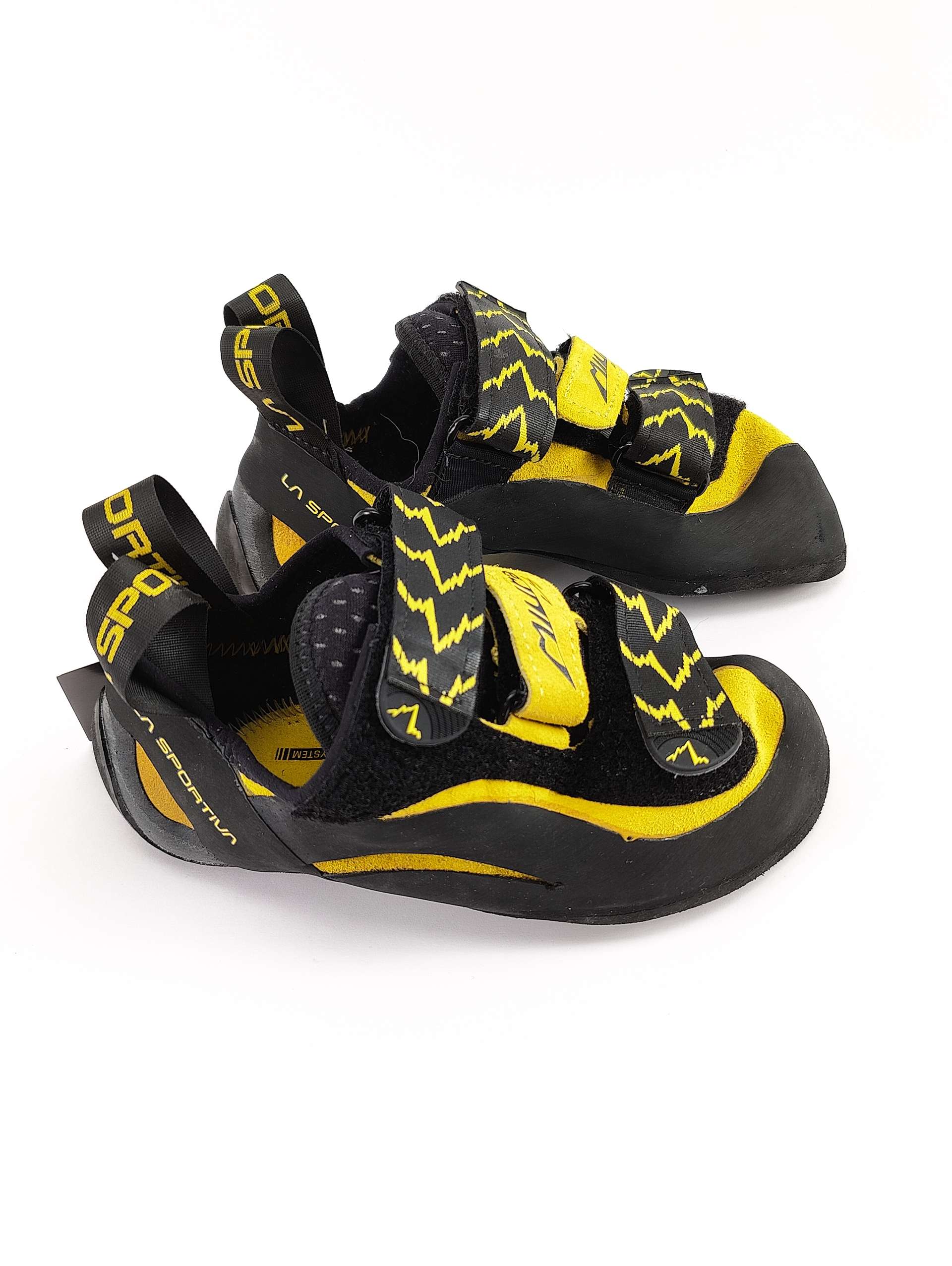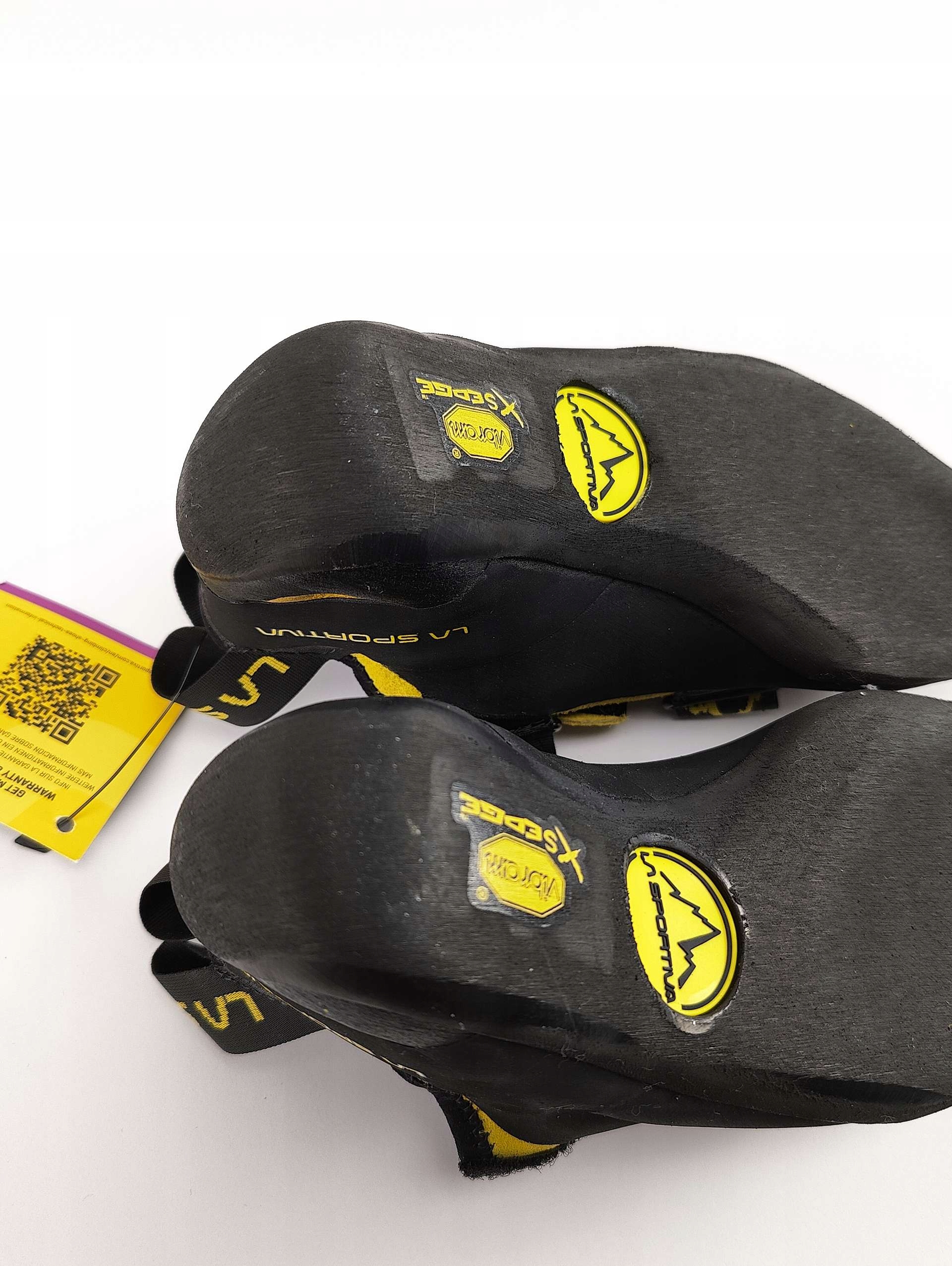 Лайки: злегка асиметричні із загостреним симетричним носком. Підошва: Vibram XS Edge, 4 мм, проміжна підошва: LaSpoFlex 1,1 мм. Матеріал: зовні м'яка теляча шкіра. Колір: жовтий. Застосування: спортивне скелелазіння (у приміщенні та на відкритому повітрі), альпійські маршрути.