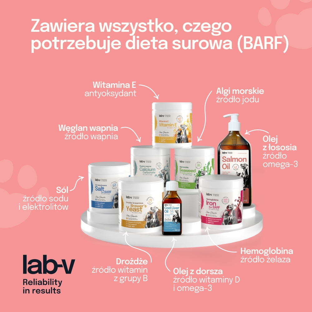 Практичний набір добавок BARF для собак, що дозволяє збалансувати сирий раціон і забезпечити його поживну повноцінність.