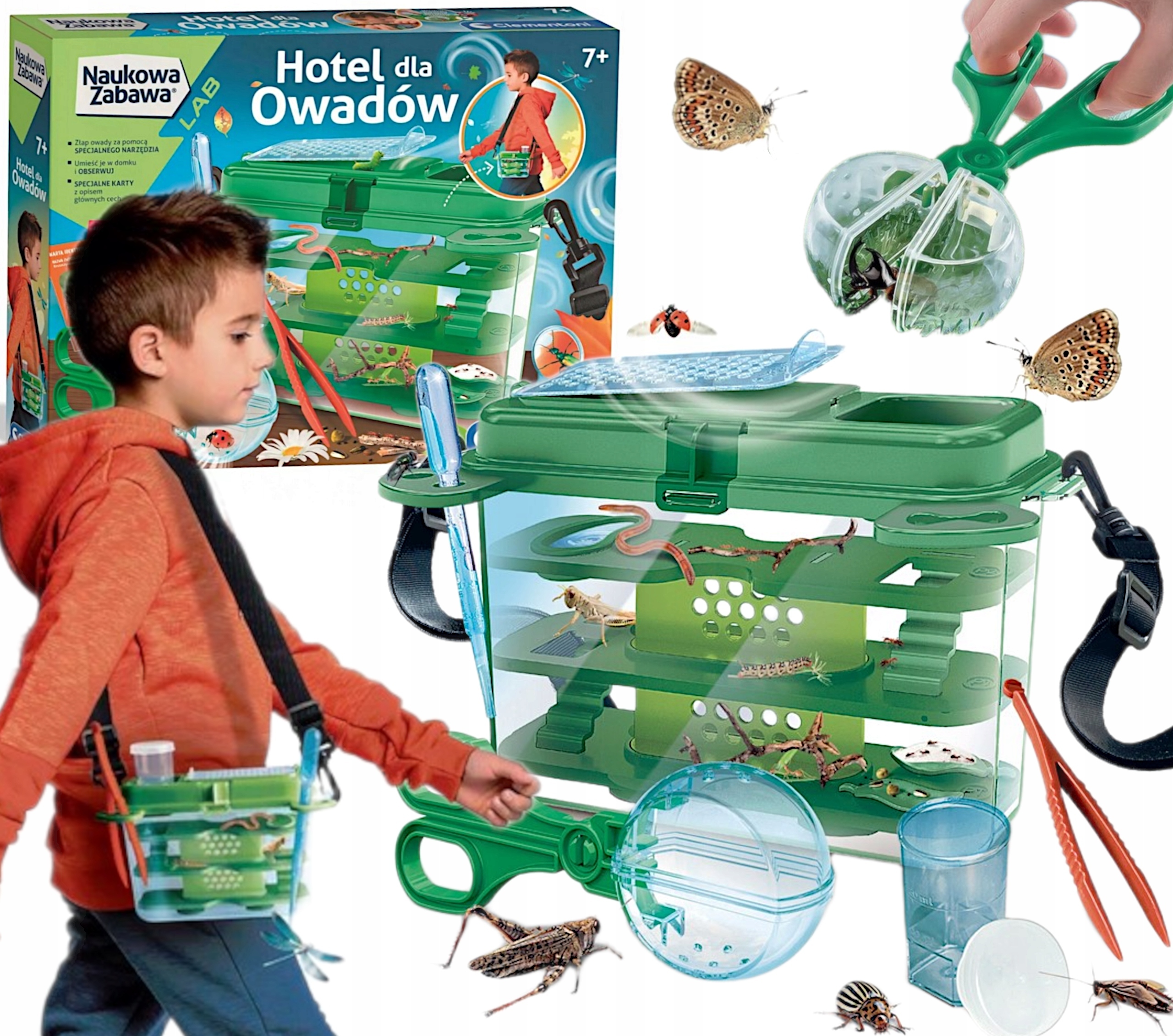 Цей інтерактивний набір дозволяє дітям навчатися через гру, розвиваючи їхні інтереси до біології, природи та науки. У набір входять інструменти та матеріали, які дозволяють спостерігати та вивчати комах у їхньому природному середовищі.