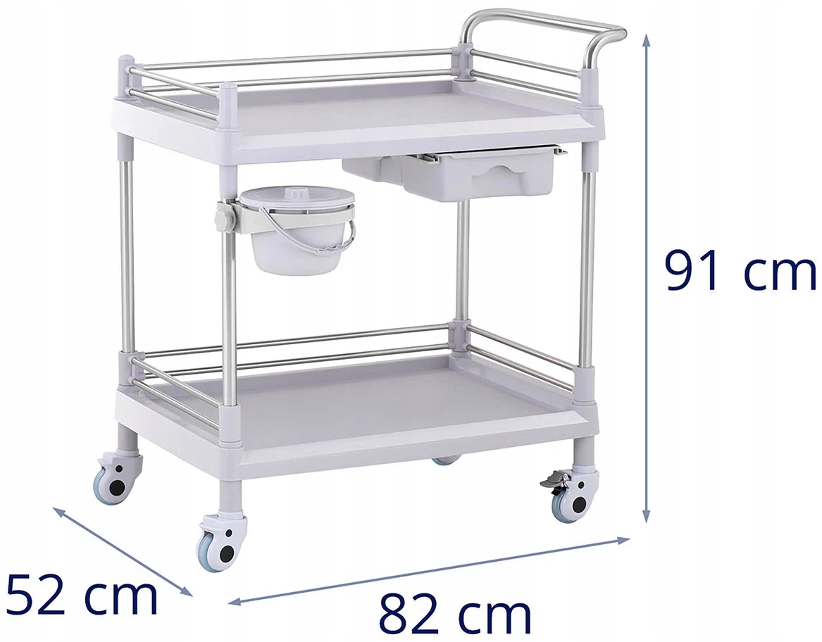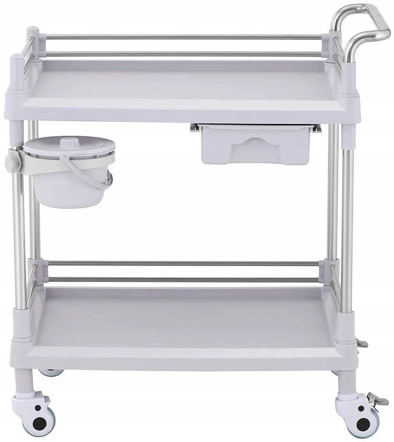 Ви хочете взяти все зі своєї шафи чи іншої кімнати і мати це під рукою? Завдяки чотирьом колесам і зручній ручці ви можете швидко і легко транспортувати посуд туди, куди вам потрібно! Комбінація матеріалів пластикових коліс (АБС + ПВХ) не подряпає навіть делікатну підлогу. Щоб забезпечити необхідну стійкість, просто застосуйте два надійних стоянкових гальма. Лабораторний візок навіть призначений для сміття. На бічній трубі є практичний контейнер для сміття, який ви можете повертати на 360° залежно від ваших потреб.