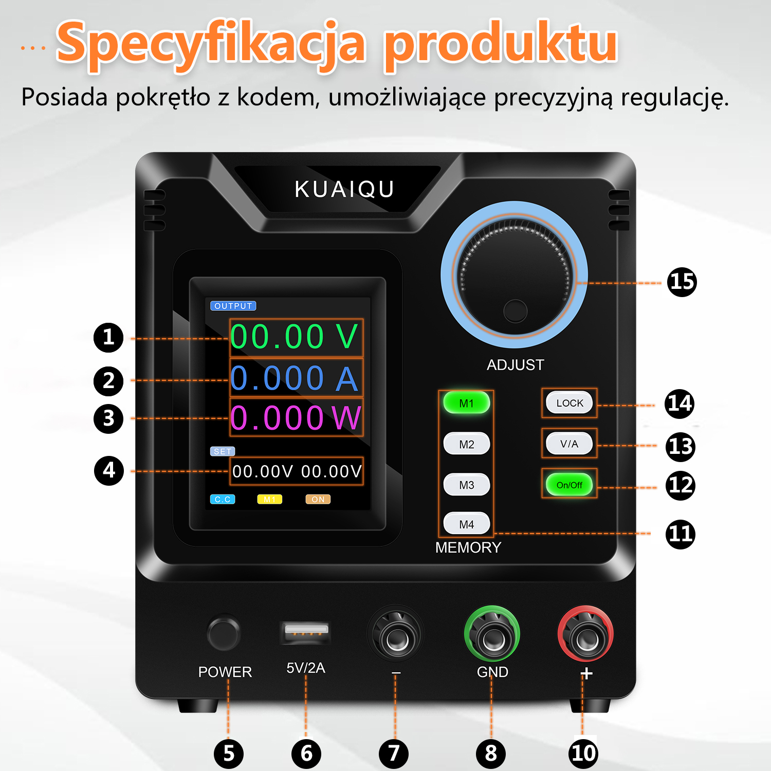 Цей блок живлення постійного струму підходить для заряджання акумуляторів (літій-залізо-фосфатних акумуляторів, свинцево-кислотних акумуляторів тощо), ремонту електронних виробів, обслуговування комунікаційного обладнання, електролізу, гальванічного покриття, покриття щітками, тестування освітлення, тестування на старіння, тестування виробничої лінії, DIY, лабораторій, шкіл, наукових досліджень і навчання тощо. KUAIQU DC ідеально підходить для початківців, професійних електриків і любителів електроніки своїми руками.