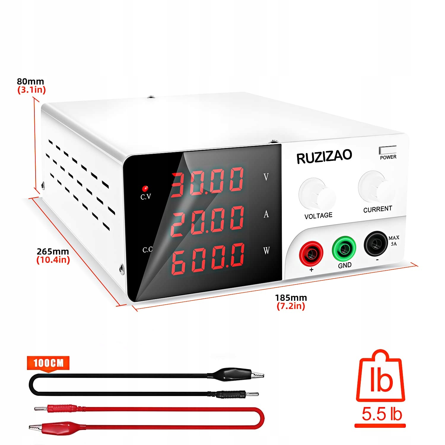 Лабораторне джерело живлення Ruzizao 30 В, 20 А, Блок живлення з високою електроенергією, регульований джерело живлення постійного струму 600 Вт, імпульсне джерело живлення з 4-значним світлодіодним дисплеєм, контролем кодера та стабільністю виходу