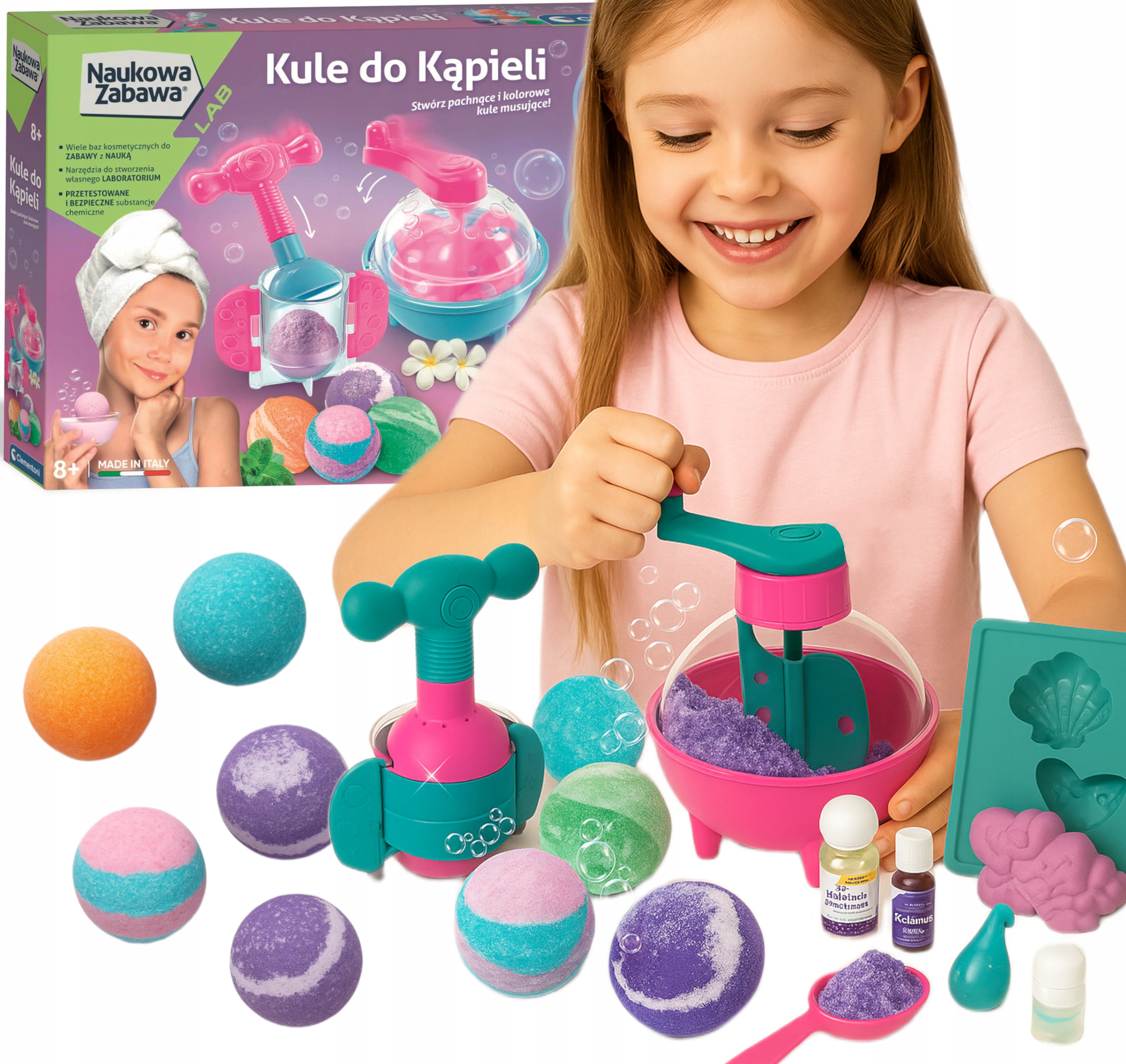 ЛАБОРАТОРНИЙ НАБІР АРОМАТИЗОВАНІ КУЛЬКИ ДЛЯ ВАННИ LEARING FUN 8+ CLEMENTONI