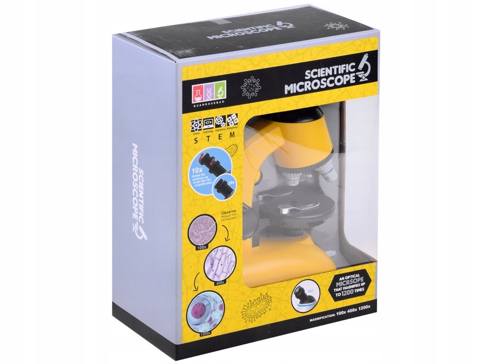 - Невеликий лабораторний мікроскоп чудовий як подарунок для маленьких вчених, які люблять спостерігати за речами, яких ви не можете побачити неозброєним оком. Завдяки мікроскопа, наша дитина навчиться навколишньому світу з більшого близького, ніж зазвичай. Мікроскоп введе невеликий дослідник у чудовий світ мікробіології, науки та природи. Мікроскоп має поворотне скло на 360 °, три типи 4x/10x/40x розширення та побудована лампочка для підсвічування перегляду. Набір був зроблений дуже ретельно і точно повністю з пластику, він працює на 2 батареях AA (не входить). Мікроскоп має все необхідне для перегляду мікрогор.
