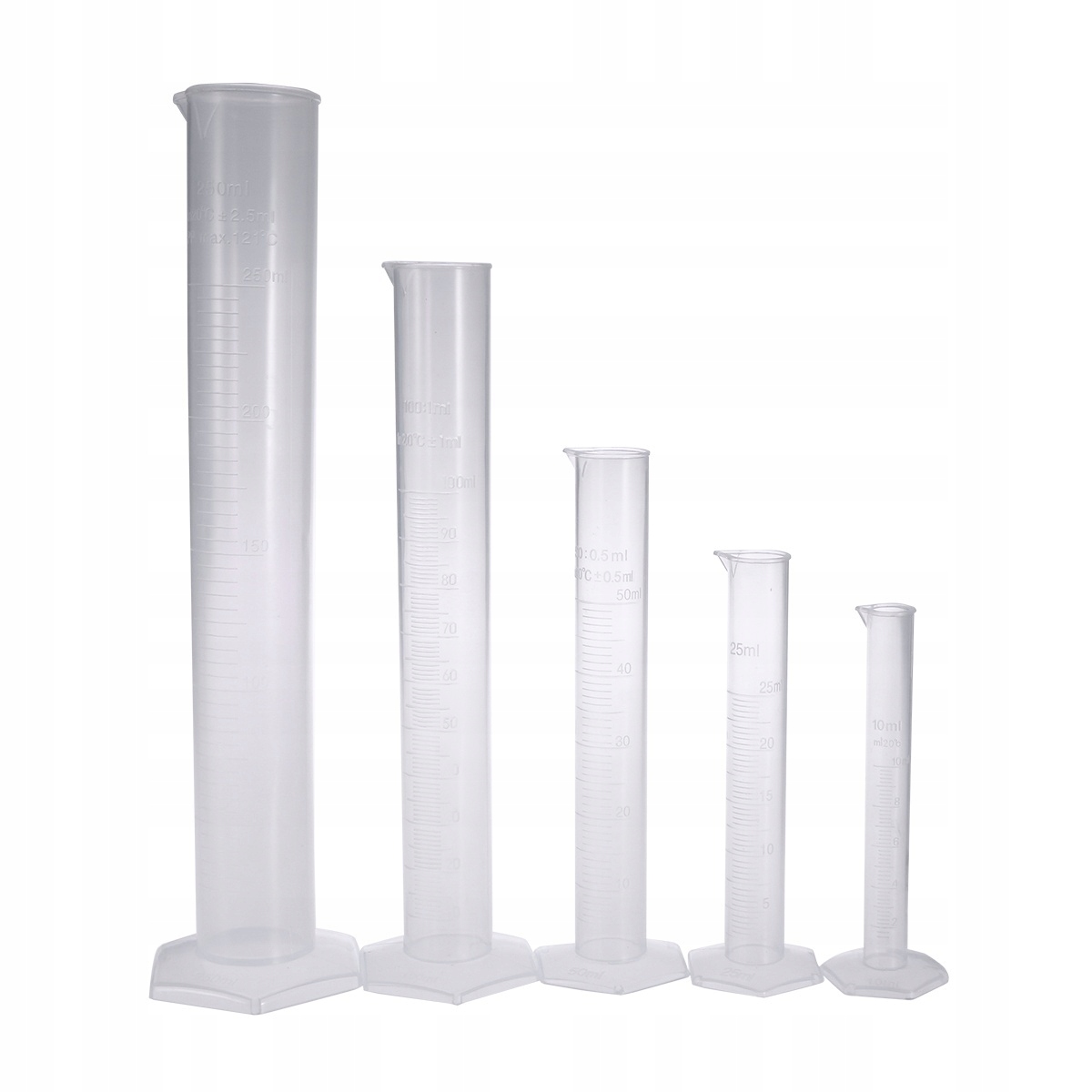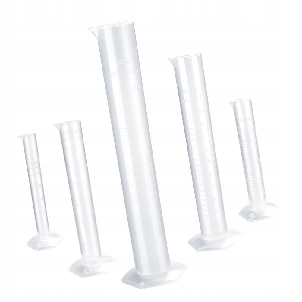 ✅1 * набір з 5 штук прозорий вимірюючий пластиковий циліндр, градуйований 10 мл / 25 мл / 50 мл / 100 мл / 250 мл