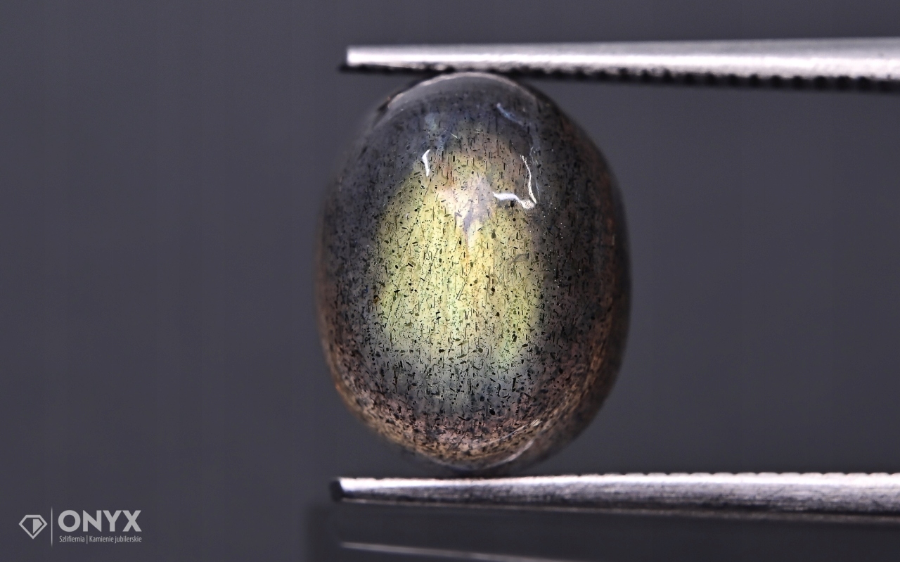 Зразок лабрадориту, природного каменю у формі кабошона для виготовлення оригінальних прикрас.