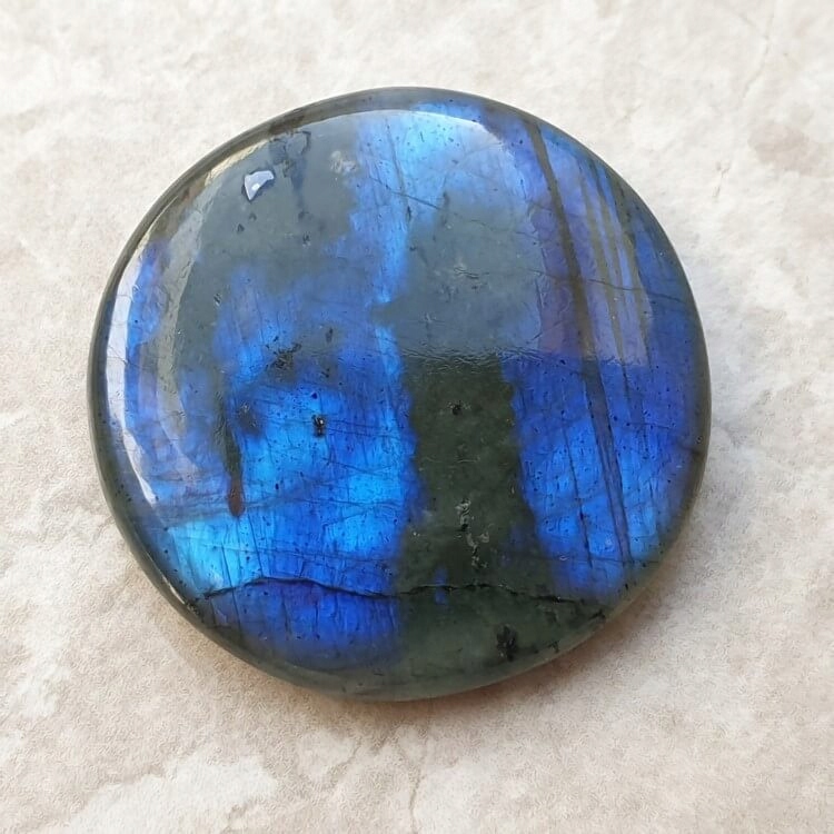 Лабрадорит b> характеризується тим, що його світіння виходить залежно від кута падіння світла. На фотографіях показано конкретний пропонований камінь, при покупці ви отримаєте точний кабошон.