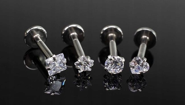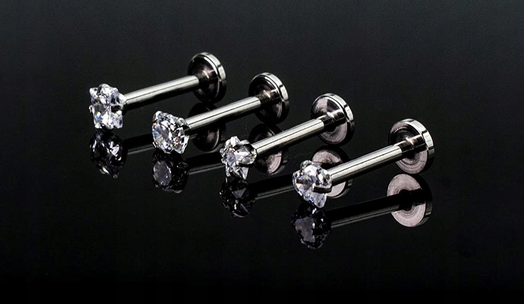 НАБІР З 4 ЛАБРЕТТІВ З ЦИРКОНІЄМ /4 СТИЛІ/ З ВНУТРІШНЄЮ РІЗЬБОЮ