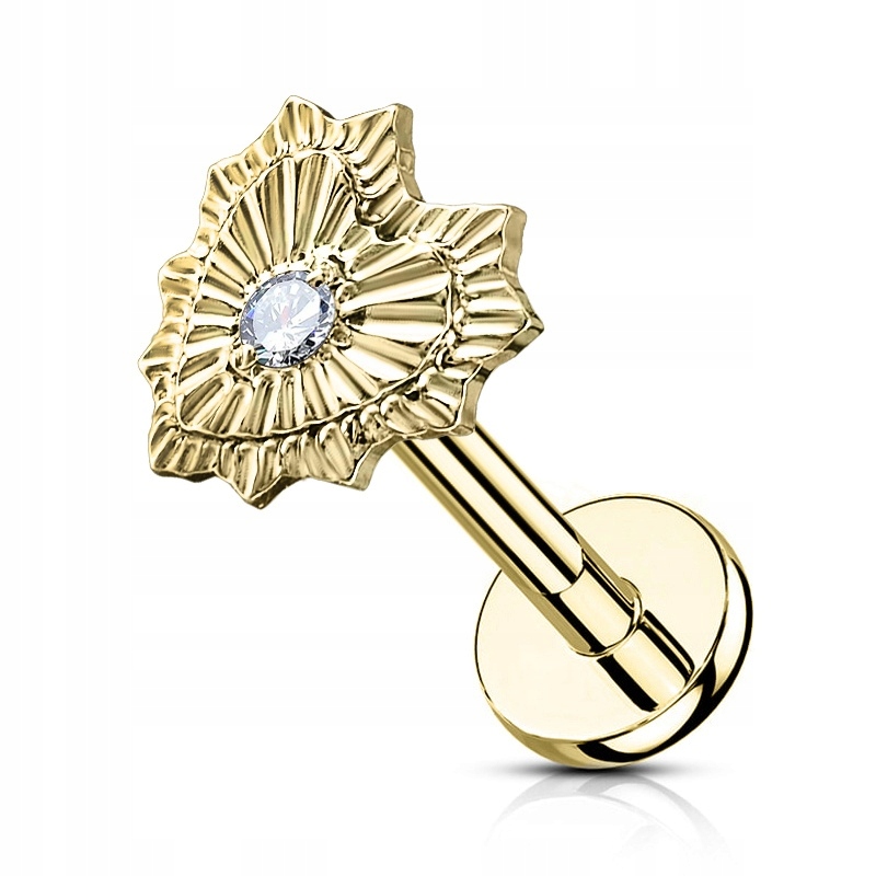 Лабрет з готичним серцем зі стразом 1,2/6 золотий