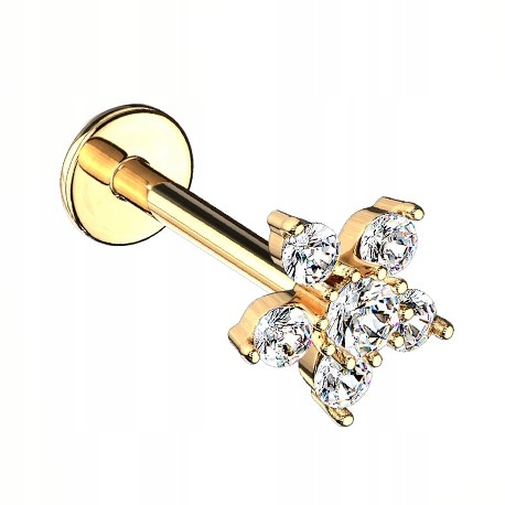 Лабрет з кришталевою квіткою - Внутрішня різьба 1,2/6 золотиста