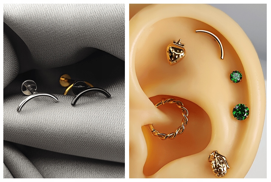 Тонкий визначальний характер Лабрет з луком - це тонке переосмислення класичного стрижня - його зігнута форма приводить до уваги лінію горизонту безпосередньо перед сходом сонця. Цей делікатний дизайн жест приносить трохи динаміки та вишуканості до будь -якої стилізації. Ювелірні вироби виготовлені з titanium g23 , шкірного матеріалу , який поєднує в собі легкість з винятковим імунітетом.