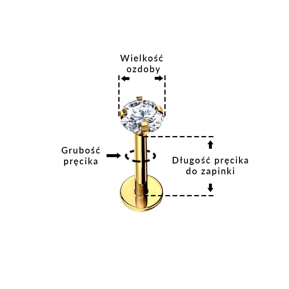 Лабрет з титану GOLD з цирконом 1,2/8/4