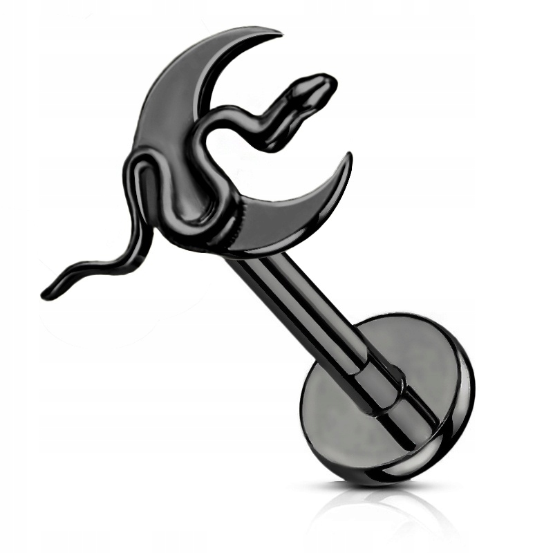 Лабрет зі шлангом на місяці - внутрішня різьба 1,2/6 чорний