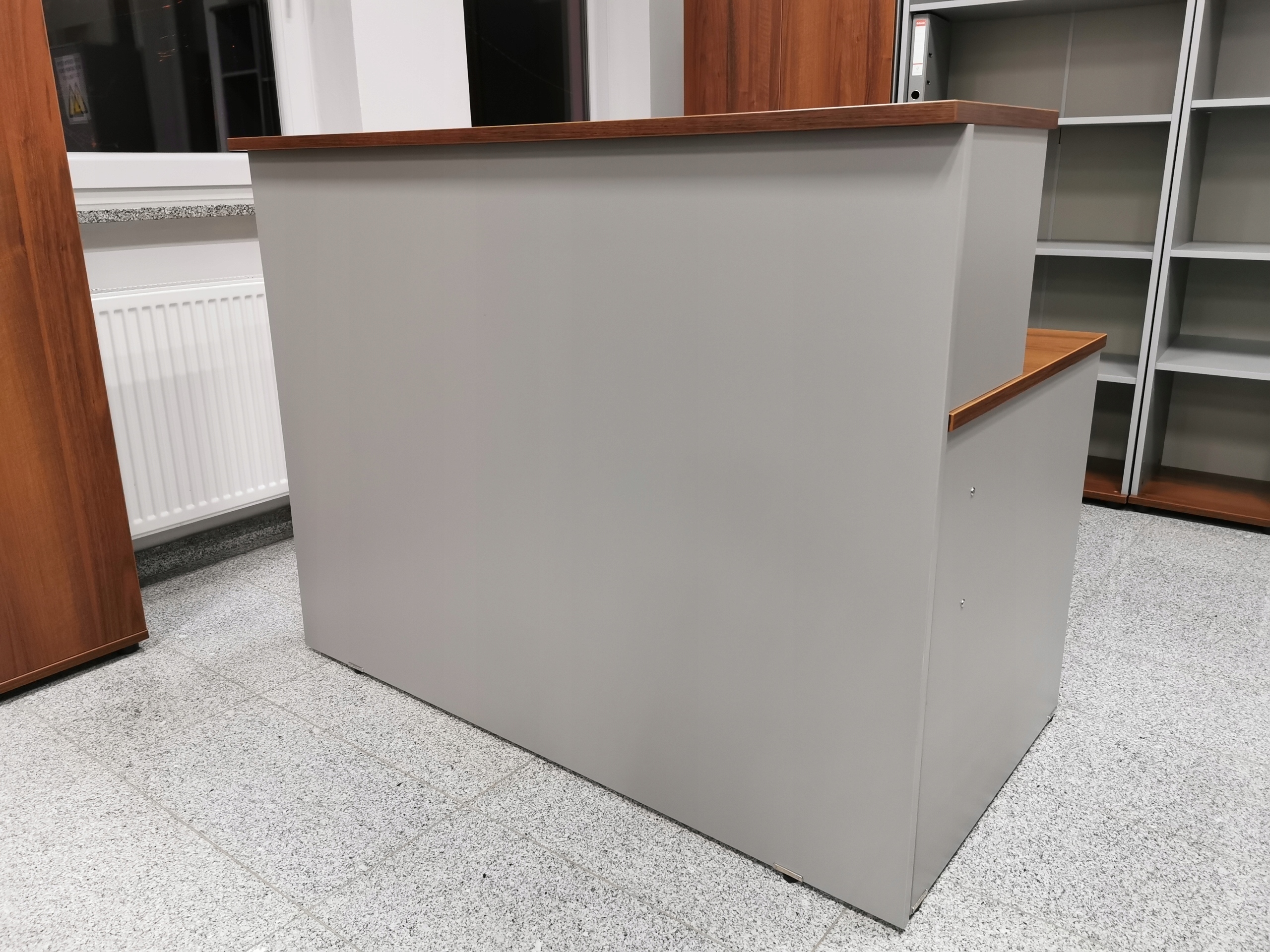 Стійка стандартно доступна в кольорі темний горіх у поєднанні з сірим. За бажанням ви можете придбати контейнери, полиці, столи та інші аксесуари для прилавка (перегляньте наші інші аукціони)