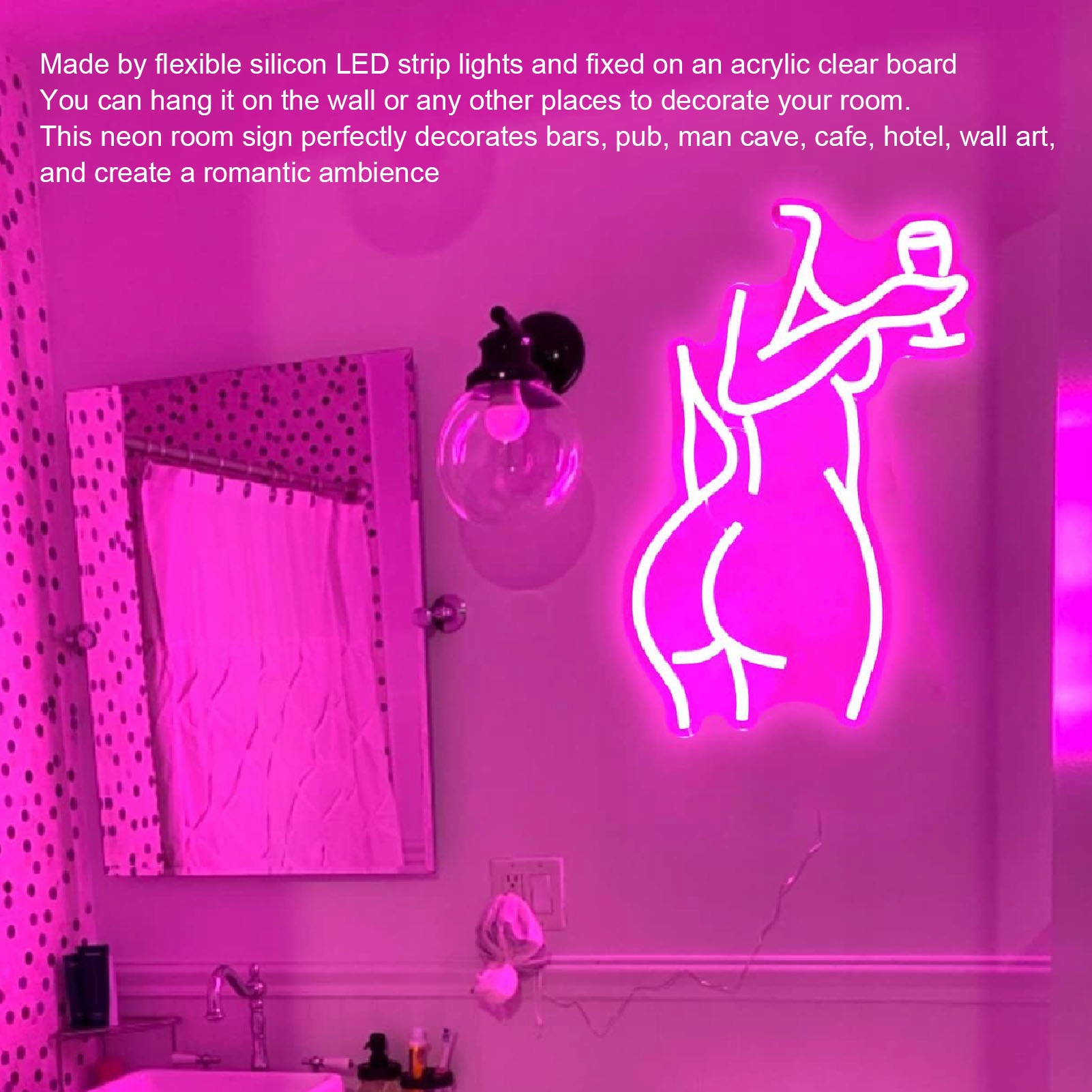 1. Інноваційний дизайн: дизайн неонової вивіски Lady Back натхненний красивою фігурою жінки, яка п’є червоне вино. Супер веселе неонове оформлення бару. Сліпуче рожеве світло зробить вашу кімнату чи вечірку привабливішою.