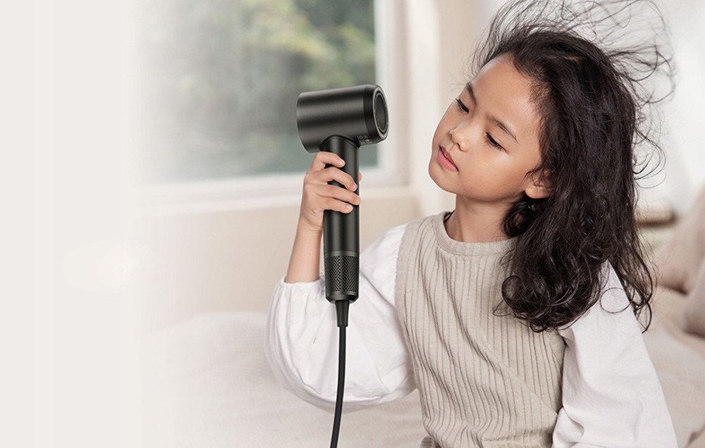 Пристрій до 60% стрункіший і 75% легше, ніж стандартні сушарки, тому ви можете висушити волосся. Компактний розмір і легкість змушують дитину також впоратися з підтримкою пристрою і висушує волосся самостійно. Рівень гучності пристрою становить лише 59 дБ , тому ви можете комфортно висушити волосся в будь -який час.