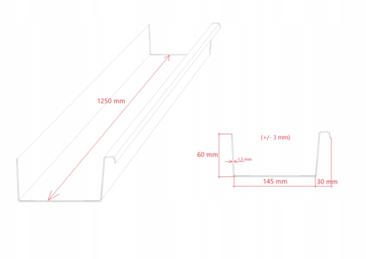 -промінь світла - (оцинкована сталь) - бампер для фар, довжина L1250 - товщина листа 1,5 мм, ширина по центру 145 мм (+/-3)