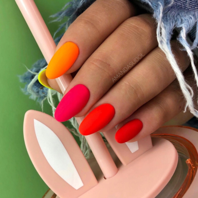 Нігті, зроблені лаком Rose Minoru, під дією денного або штучного світла стають флуоресцентними і світяться в темряві. Інтенсивність залежить від часу витримки укладання. Лак має стійкий неоновий колір, який інтенсивно світиться в темряві та помітний здалеку. Ви будете сяяти з ним на кожній вечірці. Це оригінальний і дуже ефектний спосіб підкреслити будь-який образ. При денному світлі лак виглядає як стандартний неоновий продукт.