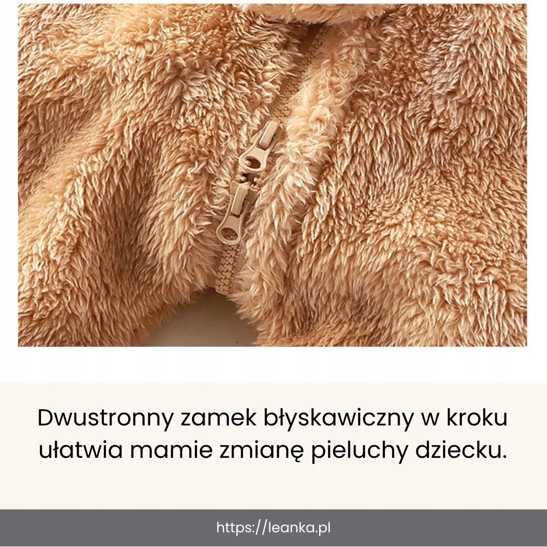 Комбінезон виготовлений із м'якого пухнастого флісу, який приємний на дотик і ніжний для чутливої шкіри малюка. Матеріал характеризується помірною товщиною, що робить костюм придатним для більшої частини року - навесні та восени як основне покриття, а взимку як легкий костюм для прогулянок в колясці або для домашнього використання. Це не товстий комбінезон, призначений для сильних морозів, а практичний і універсальний дитячий комбінезондля повсякденного використання.