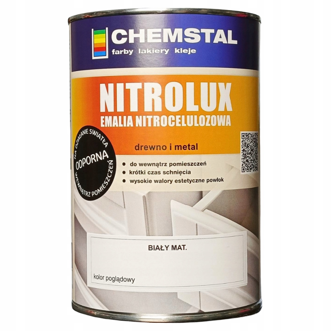 LAKIER FARBA NITRO BIAŁY MATOWY 1L NITROLUX CHEMSTAL EMALIA SZYBKOSCHNĄCA $