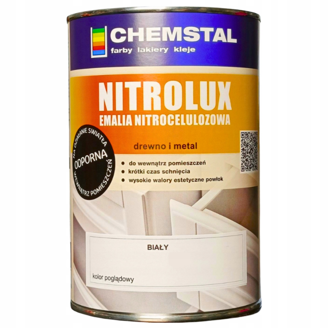 LAKIER FARBA NITRO BIAŁY POŁYSK 1L NITROLUX CHEMSTAL EMALIA SZYBKOSCHNĄCA $