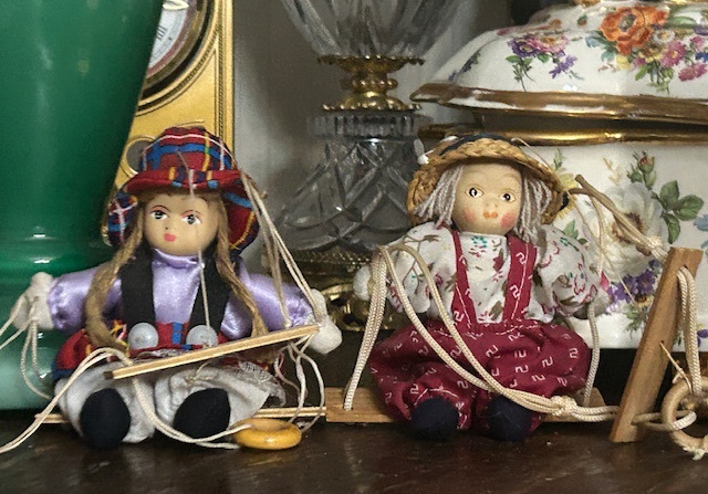 LALKA KOLEKCJONERSKA PORCELANA NA HUŚTAWCE - 2 SZT