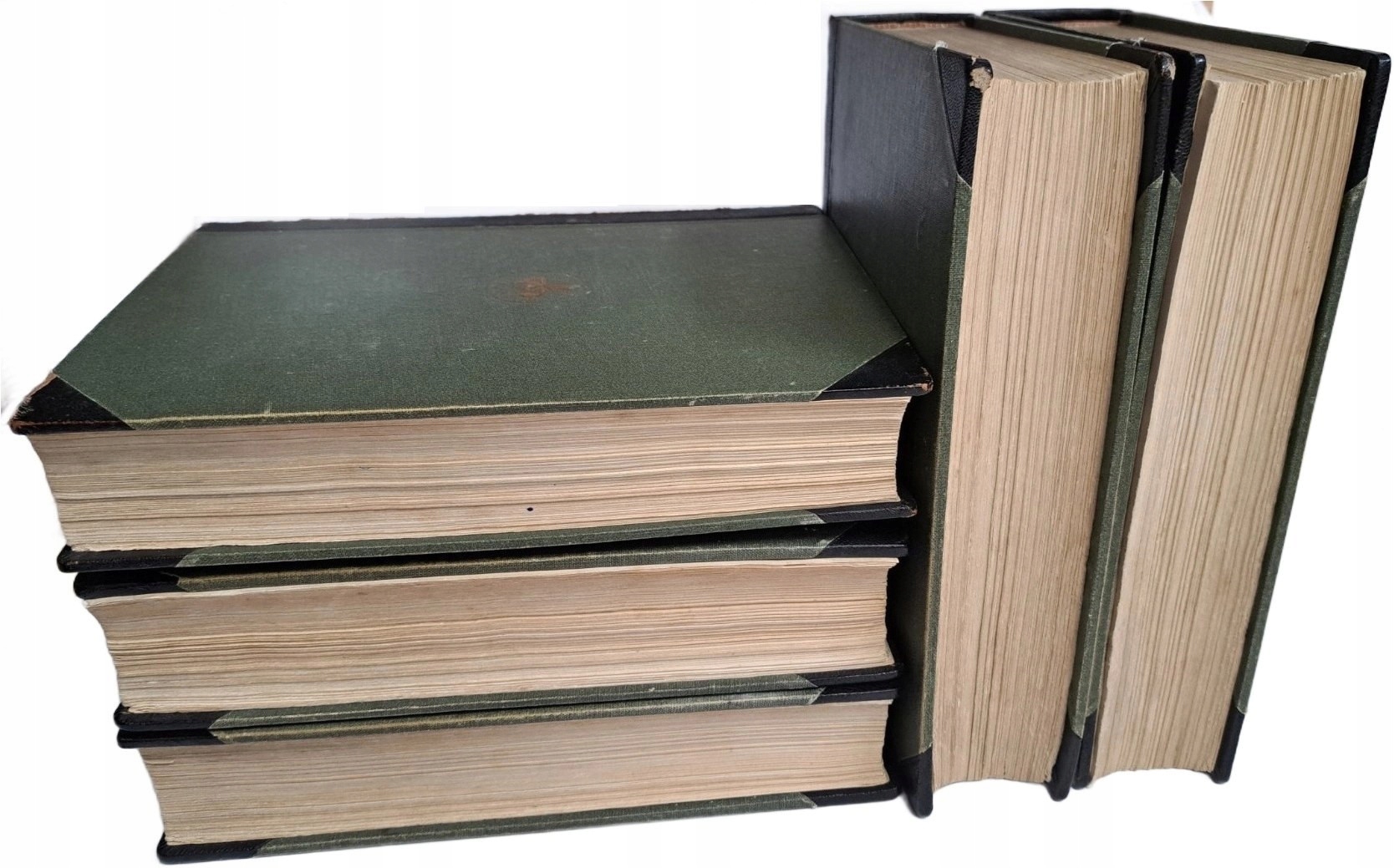 Стан: комплектна, без підписів і підкреслень, у ІІІ томі є розрив на одній сторінці, незначні іржаві плями [лисиця - без пошкоджень тексту], бруд на блоках сторінок, обкладинки з потертостями та змінами кольору, у ІІ, ІV та V томах картковий блок відривається від корінка з одного боку, у ІІ та ІІІ томах є розриви на краї хребта, картонна коробка з саднами