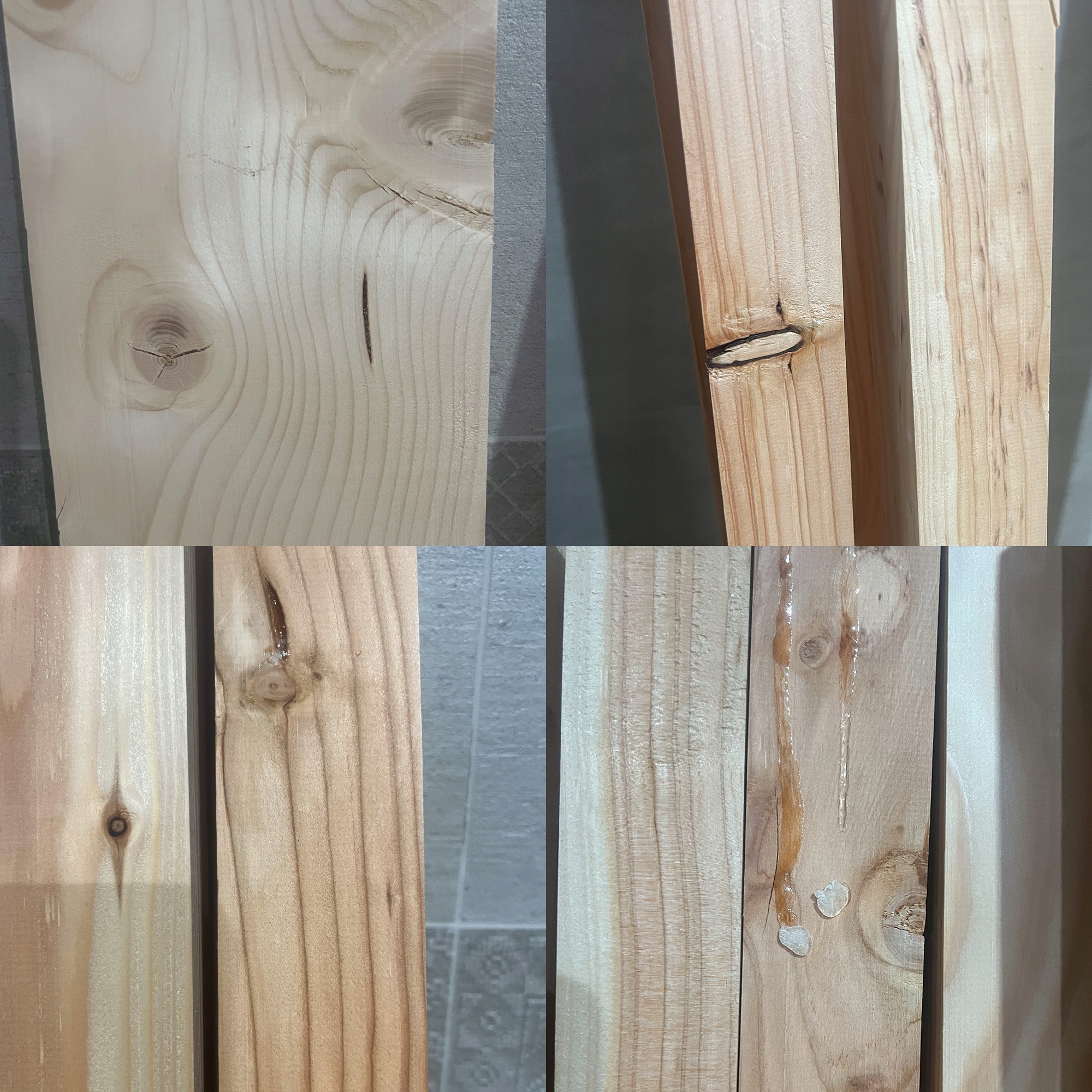 Наша продукція виготовлена з натуральної деревини, яка може демонструвати унікальні риси, такі як вузли, невеликі тріщини, знебарвлення або смола. Ці природні елементи додають деревину до справжнього шарму і є свідченням її унікальності. Тріщини та незначні дефекти є нормальними і можуть з’явитися в часі.