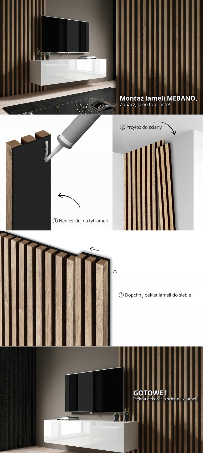 Пропоновані MEBANO PRODUCERламелі МДФ чудово вписуються в актуальний декор розташування трендів. Крім того, вони мають хороші теплові та акустичні властивості та прості в установці.