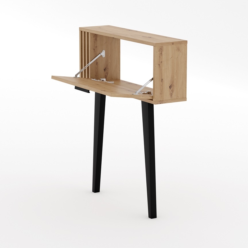 Консоль виготовлена з високоякісної дошки ламінованої дубом. Товщина дошки, з якої виготовлена шафа, 18 мм, стійка до стирання та подряпин, покрита кромкою ABS товщиною 1 мм.