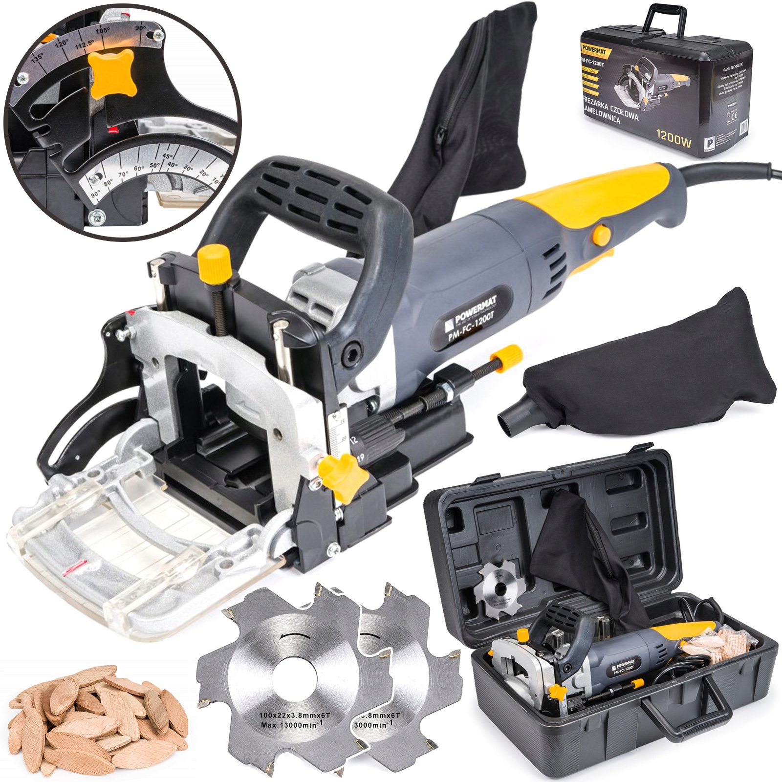 Ламельний верстат Powermat PM-FC-1200T використовується для фрезерування пазів по краях дощок або дощок, пазів для з’єднання т.зв. плоскі штифти.