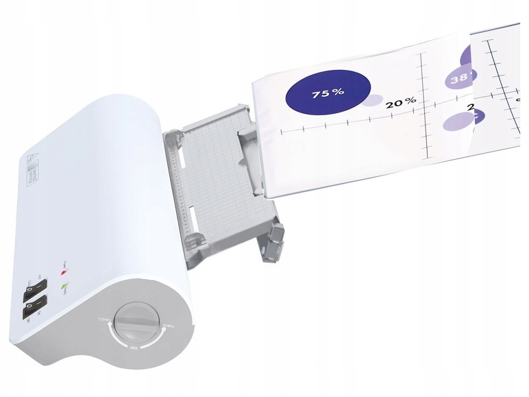 - з практичним різаком паперу та фольги: розрізає максимум 3 аркуші або 1 ламінований документ (80 г/ м²)