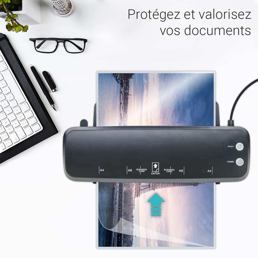 【Нагрійте пластмас】 Час нагрівання 3-5 хвилин. Індикатор температури показує, коли машина готова до ламінування.
