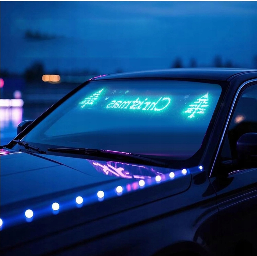 Flex світлодіодний автомобіль з великим програмованим (застосування + пілот). Надзвичайно тонкий і легкий м'який екран із барвистим світлом очей до склянки автомобіля може бути зігнутим, складеним і формою для адаптації до різних поверхонь. М'який екран: Цей диявольський диявол очного дисплея може бути зігнутим, складеним і формуючим для адаптації до різних поверхонь. Він дуже легкий і простий у встановленні.