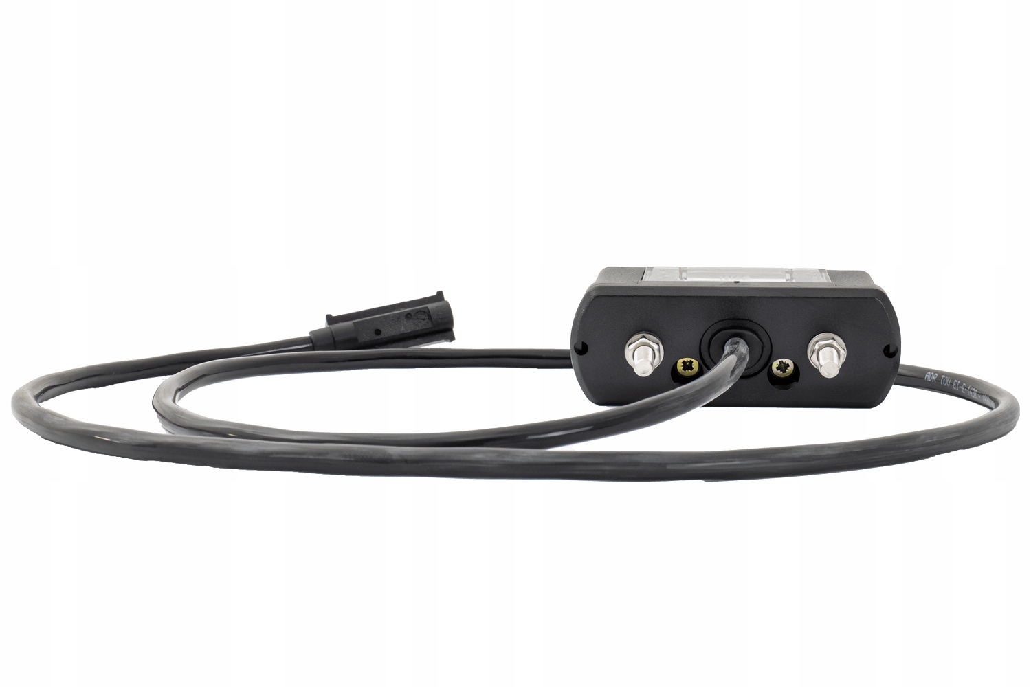 Ліцензійна лампа з ліцензійним освітленням, оснащена двома світлодіодами, має 1-метровий кабель постійного струму та роз'єм клацання, що дозволяє легко складати та гнучкий підключення до електричної установки транспортного засобу.