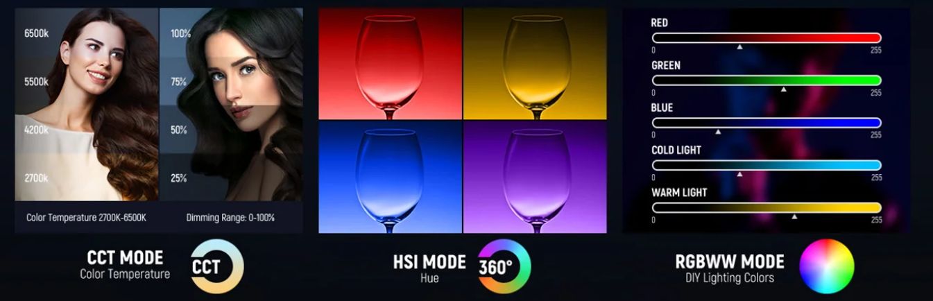 ▶ ️CCT with color temperature 2700K - 6500 K and color correction -50/+50 gm