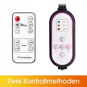 - Таймер: 4, 8 та 12 годин; Теплий білий: 3000 К, 40 штук; Червоний: 660 нм, 12 штук