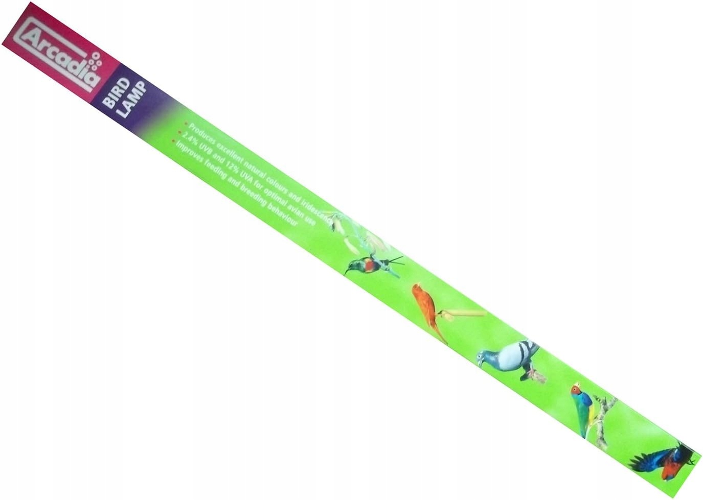 Лампи Arcadia Bird були розроблені для птахів, які утримуються в неволі, які уникають прямого сонячного світла. Лампи для птахів імітують сонячне світло за інтенсивністю та кольором, щоб забезпечити тваринам максимально природне середовище. Спектр світла схожий на сонячний і містить 12% UVA та 2,4% UVB від загального світлового потоку. Це підтримує природну поведінку та в багатьох випадках покращує результати розмноження.