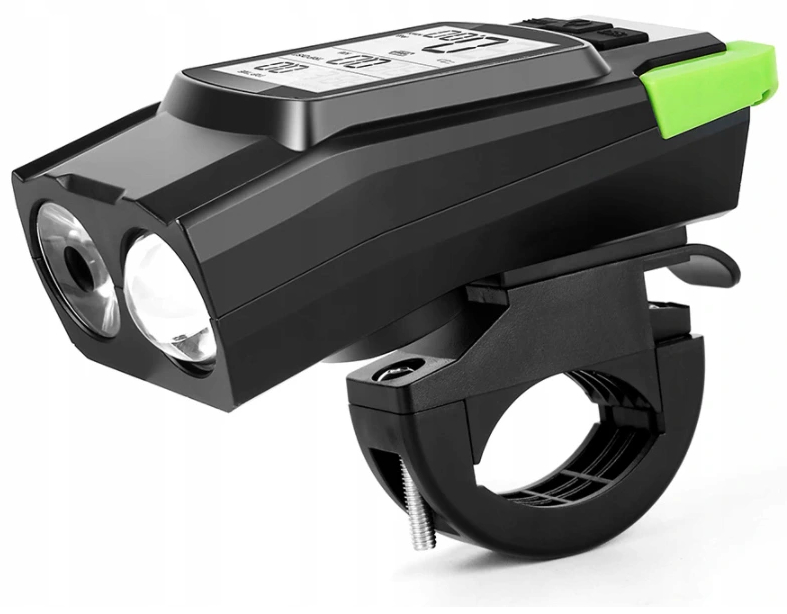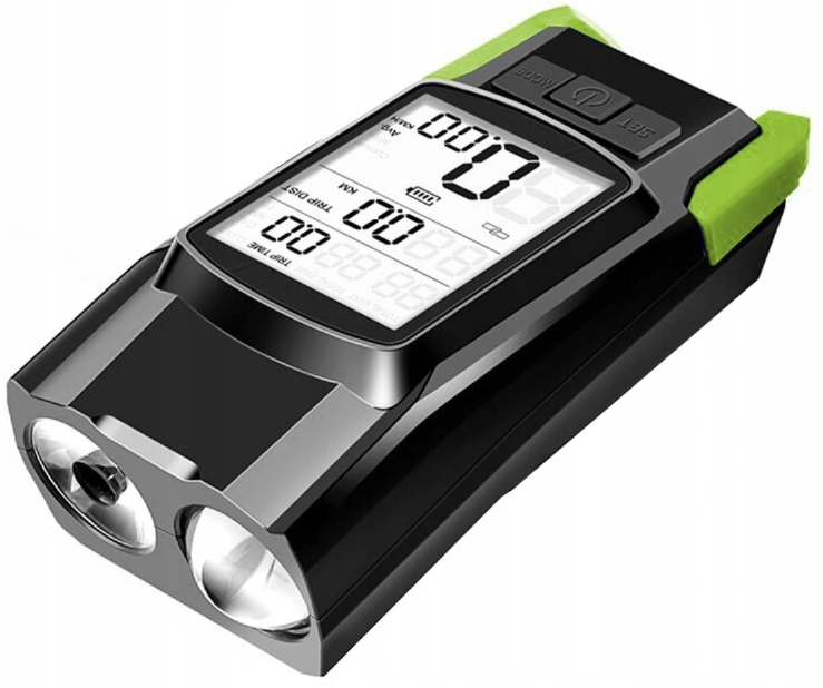 - Велосипедна лампа 3 в 1 із вимірювачем швидкості та звуковим сигналом.