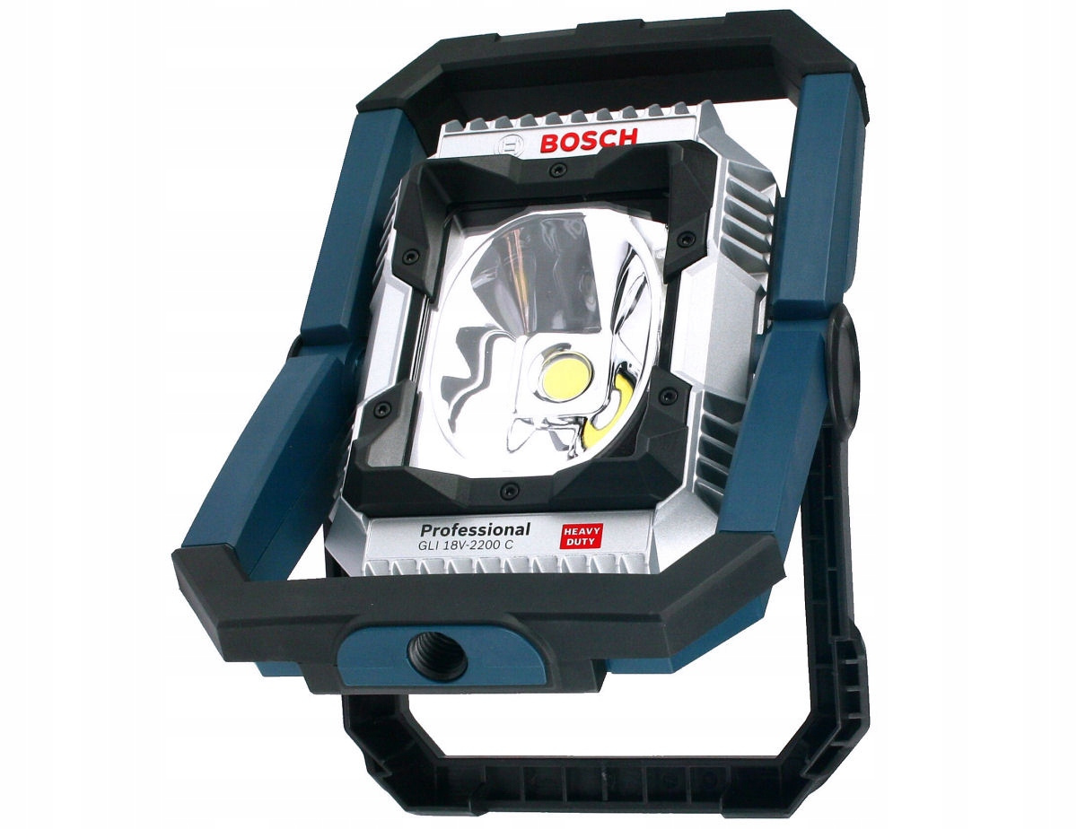 GLI 18V-2200 C Professionalє універсальною та довговічною робочою лампою Bosch у класі напруги 18 В. Ефективний світлодіод забезпечує світловий потік до 2200 люменів і, отже, краще освітлення. Пристрій захищений від пилу та бризок завдяки міцній кришкі акумулятора (рівень захисту IP 64). Зручне керування через смартфон дозволяє швидко та легко регулювати освітлення. Інструмент має два налаштування яскравості, п'ять кутів нахилу та різьблення штатива 5/8", що дозволяє швидко адаптуватися до будь-якої робочої ситуації. Лампа ідеально освітлює всю робочу зону протягом усього дня. Виріб сумісний з усіма Bosch 18 V професійні акумулятори (професійна система Bosch 18 В).
