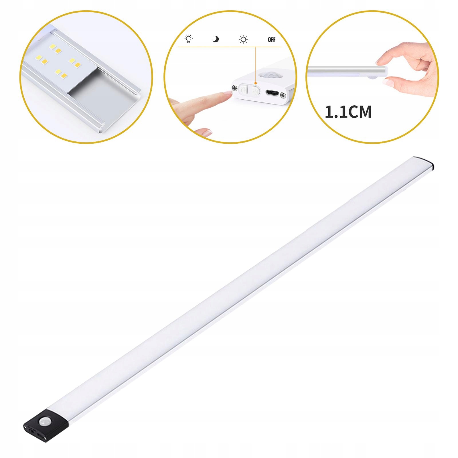 Лампа для гардеробу тонка, акумуляторна, світлова стрічка для кухні, чорна, 60 см