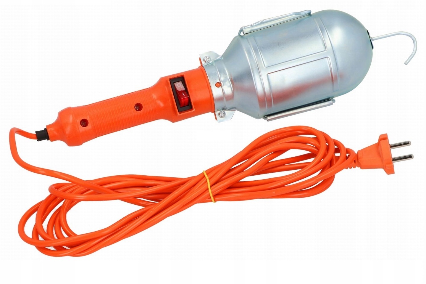 - Лампочка захищена металевим абажуром з відбивачем і гачком для підвішування під час роботи.