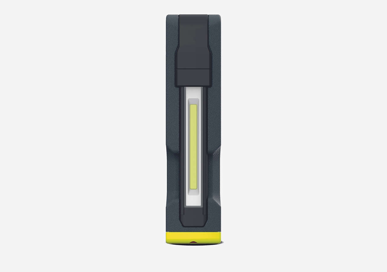 Ергономічна неслизька ручка, розроблена з урахуванням потреб користувача, дозволяє міцно тримати цю робочу лампу. Якщо вам потрібно мати обидві руки вільними під час роботи, безпечно розташуйте світильник завдяки поворотному на 360° висувному гаку та сильному магніту. Кнопка живлення розташована на задній панелі пристрою, тому під час увімкнення немає відблисків.